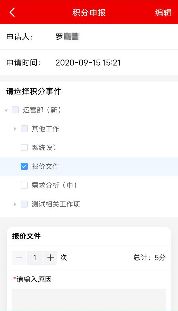 适用于职能部门,根据工作内容添加任务事件库,并通过小组讨论,设定对应积分。记录员工每天完成的具体工作,并获得相应任务积分,每个员工都可以实时看到组织内的积分排名,从而产生自驱力,促进业务工作的更好开展。这些积分和员工的每日考勤、参加业务会议、活动、学习等构成业务工作积分,与党建积分一起,实现了党员党建和业务工作的360度考核。
