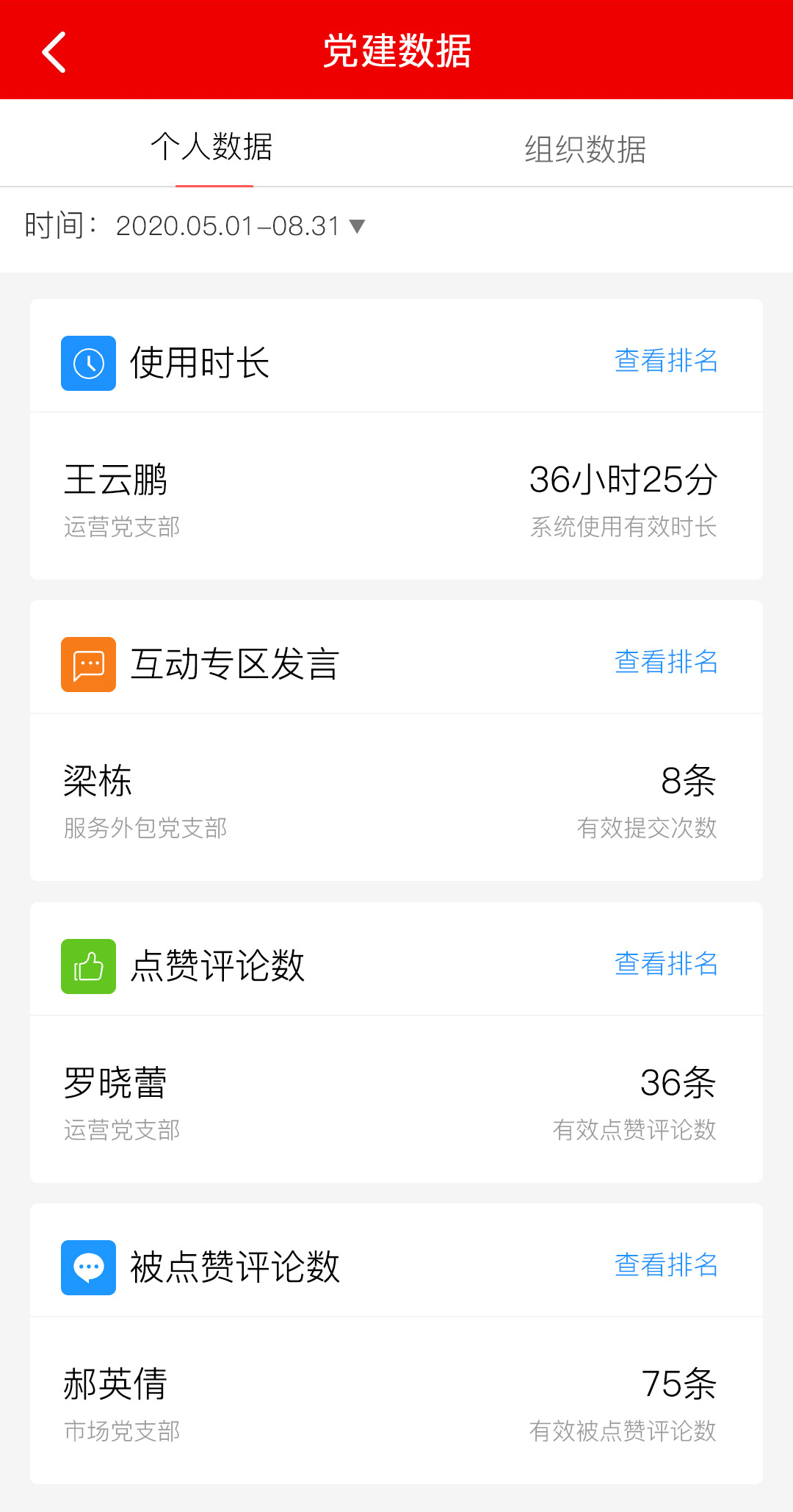 数字智能中讯·智慧党建平台对所有党建工作轨迹进行记录,并设置相应积分,对《中国 共产党支部工作条例》中明确规定的党建工作作为党员的达标项,其他党建工作作为加分项, 分星级管理,平台自动统计分析,形成相应报表,个人、小组、支部排名一目了然,从而产生 自驱力,通过这些功能使党建工作得以更好的开展。